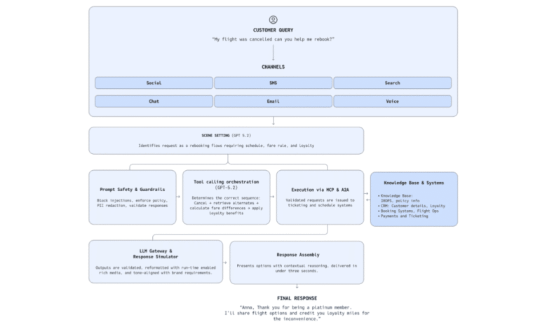 ولتعزيز قابلية التنبؤ عبر المهام المختلفة، تطبّق Netomi أنماط مطالبة موصى بها من أوبن إيه آي، من بينها التذكيرات الدائمة التي تحافظ على التزام الوكيل بالقواعد والأهداف طوال التنفيذ. كما تعالج الشركة أحد أبرز مواطن الإخفاق في الذكاء الاصطناعي—المهام التسلسلية—عبر توازي التنفيذ، مستفيدة من البث منخفض الكمون واستقرار استدعاء الأدوات في جي بي تي-٤.١ لتسريع الإنجاز.