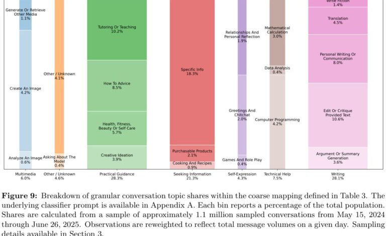- وفقًا لدراسة أوبن إيه آي، انخفض استخدام شات جي بي تي في العمل من 47% في يونيو 2024 إلى 27%، رغم أن عدد الرسائل اليومية ارتفع من 451 مليونًا إلى 2.6 مليار.