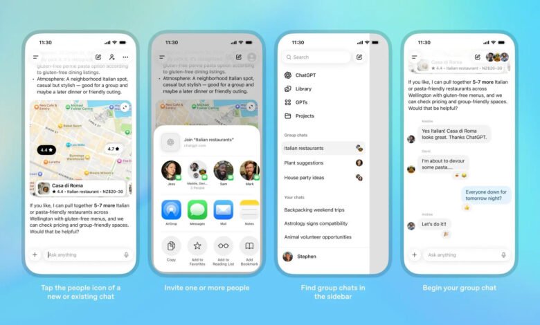 أوبن إيه آي تطلق ميزة المحادثات الجماعية في شات جي بي تي لدعم التخطيط والتعاون بين عدة مستخدمين، مع حماية الخصوصية واستفادة من قدرات GPT-5.1 Auto.