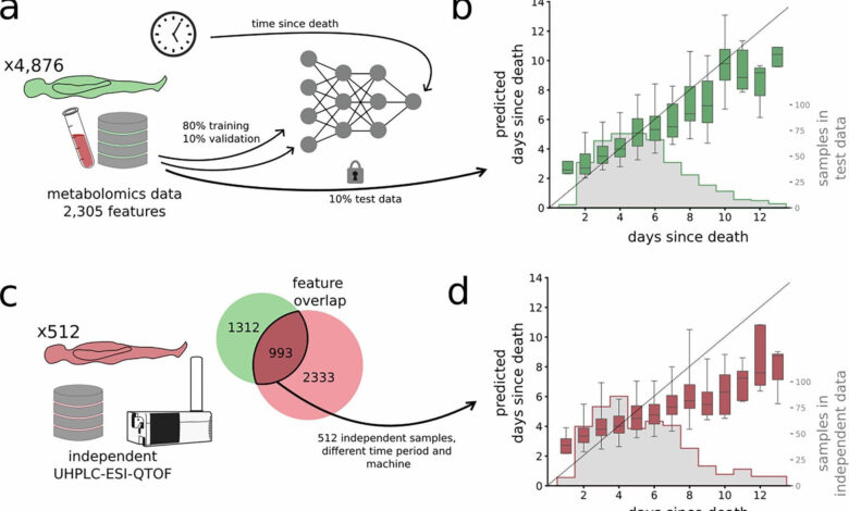 باحثون في السويد يطوّرون نموذج ذكاء اصطناعي يحلل نواتج الأيض في الدم لتقدير وقت الوفاة بدقة تصل إلى يوم واحد، حتى بعد مرور 13 يومًا.