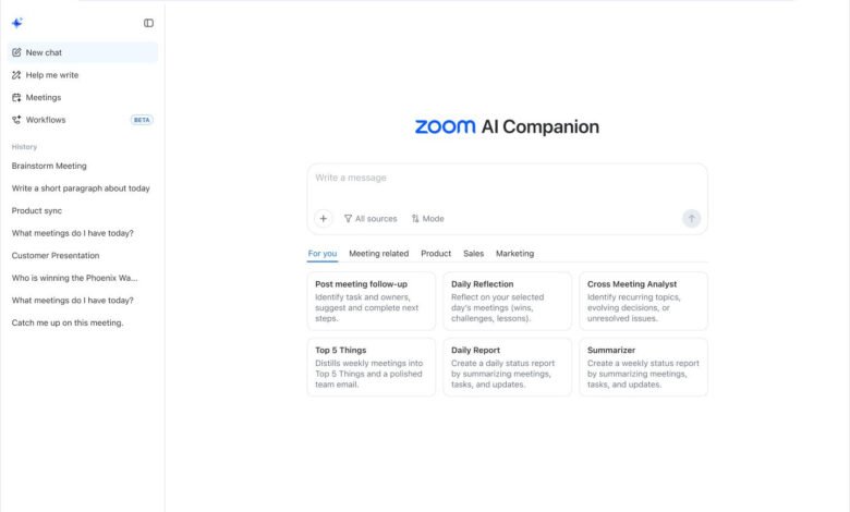 وبات AI Companion 3.0 متاحًا عبر المتصفح على ai.zoom.us، ما يتيح استخدامه عبر الويب وسطح المكتب دون التقيد بتطبيق زووم فقط. كما أضافت الشركة ميزة سير العمل الشخصية (بيتا)، وهي نظام منخفض الكود يعتمد السحب والإفلات لأتمتة المتابعات، والملخصات، والتقارير اليومية، وتنفيذ المهام باستخدام وكلاء ذكاء اصطناعي.
