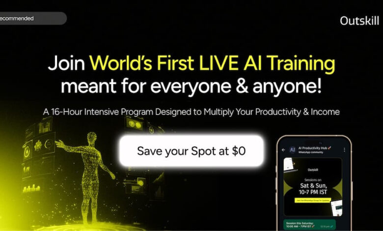 Outskill تطلق فعالية تدريبية مباشرة لمدة يومين في مجال الذكاء الاصطناعي، مع تسجيل مجاني لفترة محدودة وموارد إضافية للمشاركين.