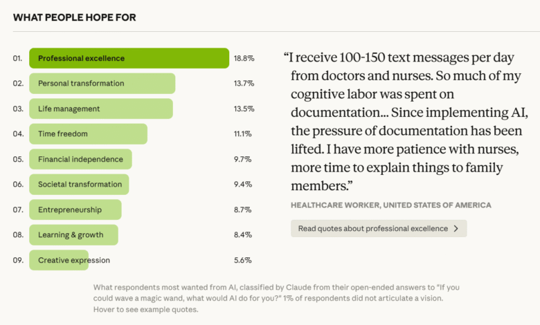 أجرت شركة أنثروبيك دراسة شاملة شملت أكثر من 80 ألف مشارك من 159 دولة حول العالم (بحسب المصدر). وبالتالي كشفت النتائج عن انقسام واضح في النظرة العامة للذكاء الاصطناعي. كما أن التقرير يسلط الضوء على ما يُسمى بديناميكية “الضوء والظل”. في المقابل يُظهر البحث أن المستخدمين يقدرون قدرة الذكاء الاصطناعي على تقديم الدعم وتعزيز الإنتاجية. ومع ذلك يخشون من الاعتماد المفرط عليه. وفضلاً عن ذلك أشارت النتائج إلى أن 67% من المشاركين عالمياً ينظرون للذكاء الاصطناعي نظرة إيجابية (بحسب المصدر). موقع أنثروبيك الرسمي يحتوي على تفاصيل إضافية حول هذه الدراسة الواسعة النطاق.