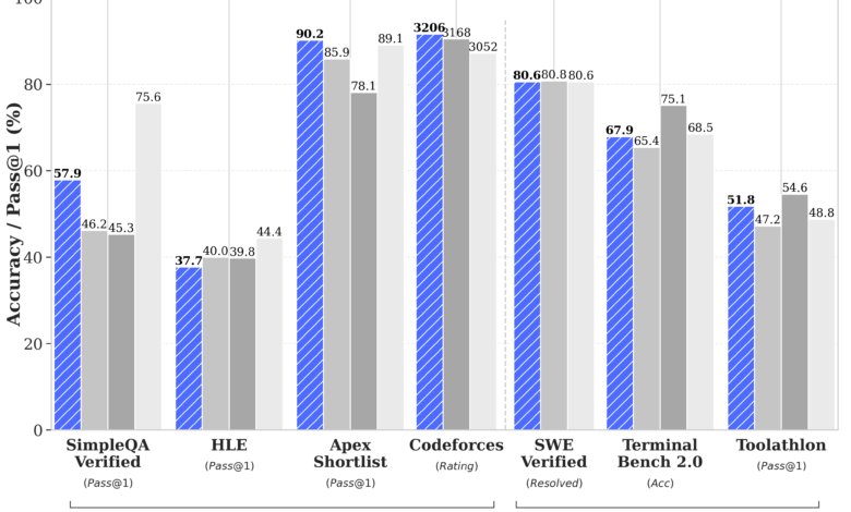 التفاصل التقنية تكشف طموحاً لا يُستهان به. V4 Pro يحمل 1.6 تريليون معامل إجمالي مع تشغيل 49 مليار معامل، مما يجعله أكبر نموذج مفتوح الأوزان حتى اليوم (وفقاً لـ DeepSeek). النسخة الأصغر V4 Flash تضم 284 مليار معامل مع تشغيل 13 مليار، والاثنان يدعمان نافذة سياق تصل إلى مليون رمز — مساحة كافية لتحليل قواعد أكواد ضخمة أو مستندات طويلة في استعلام واحد.