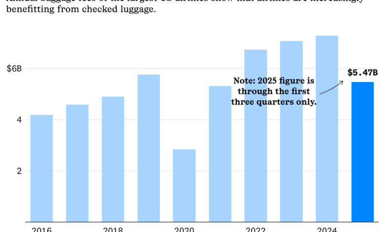 الأرقام تكشف اعتماد الصناعة المتزايد على هذه الإيرادات “الإضافية”. رسوم الأمتعة المُدرجة وحدها حققت 5.47 مليار دولار إيراداً لأكبر الشركات الأمريكية في الأرباع الثلاثة الأولى من 2025، بزيادة 12% عن إجمالي العام في 2018.